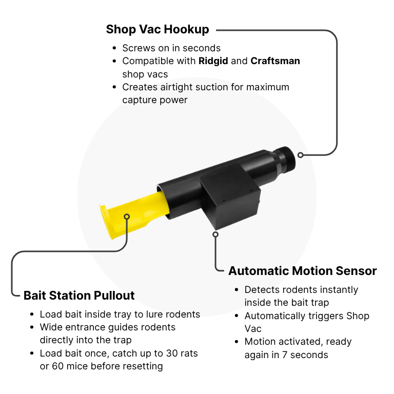 - Rats are neophobic (fearful of new objects). Disguising the RatVac reduces suspicion and increases catch rates.
