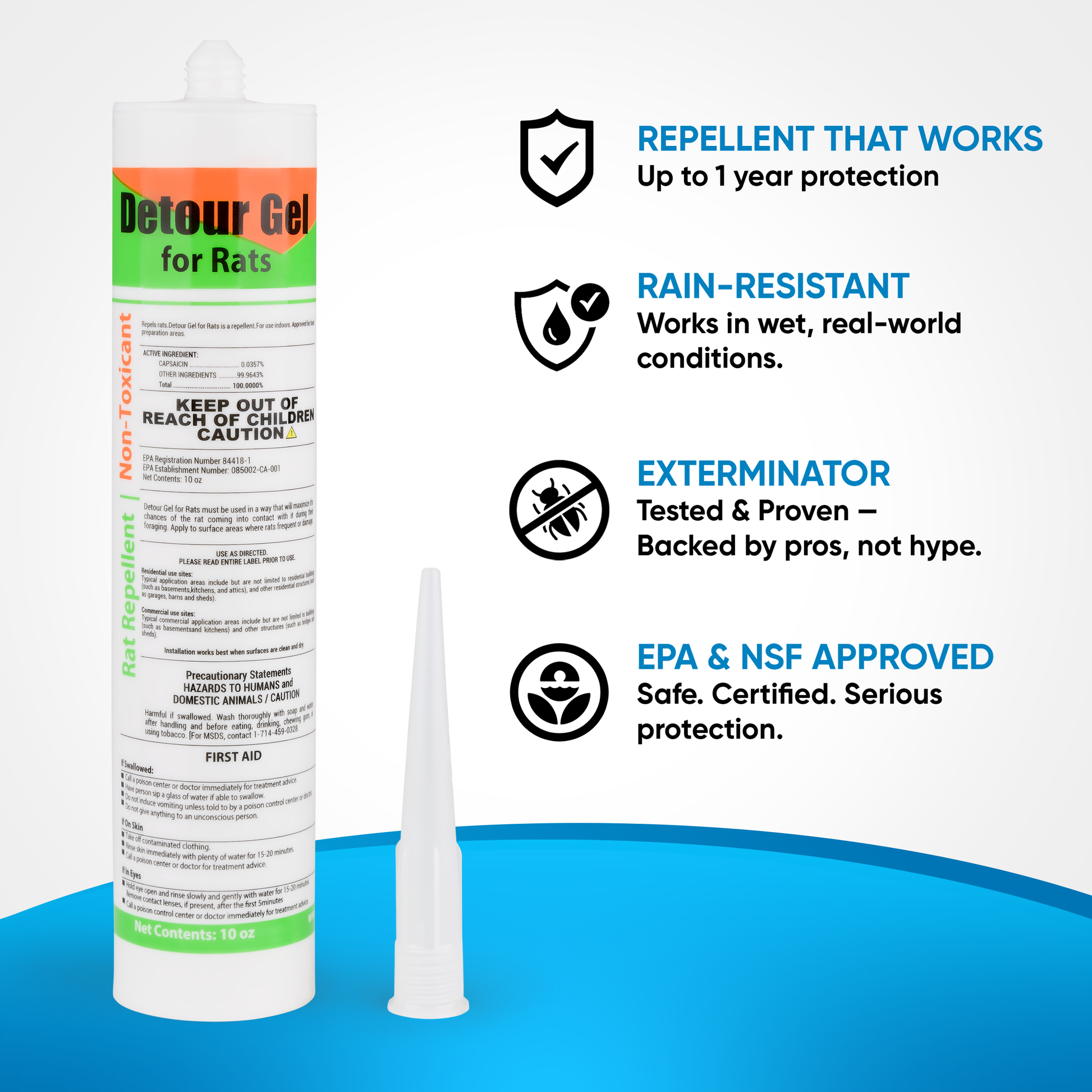 - Detour Repellent Gel – 12-month capsaicin formula rats actively avoid